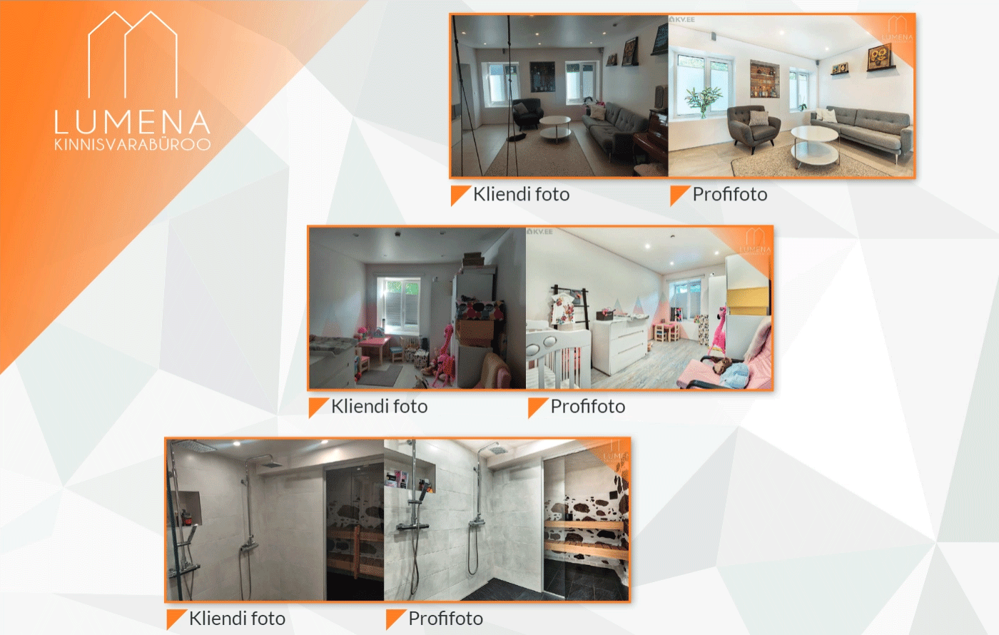 On oluline, et kinnisvara näeks hea välja mitte ainult piltide peal, vaid ka siis, kui huvilised vaatama tulevad. Majade puhul kindlasti korrastada majaesine- see on esimene asi, mida märgatakse ja sellest võib sõltuda kogu elamu esmamulje. Kui kinnisvara pildid on head, siis on kindlasti ka huvilise ootused üleval. Valmista ette kodu, mitte objekt. Veendu, et kõik oleks korras ja puhas. Samas oleks mõistlik ära korjata isiklikud fotod ja nipsasjad, et huvilisel oleks võimalus kujutada ette, milline näeks elamu välja TEMA isikliku koduna. Lisaks annab head emotsiooni, kui valitseb õdus õhkkond- hubane valgustus ning laual puuviljad, või miks ma mitte, värskelt küpsetatud kook. Meeldivad aroomid on kindlasti hea emotsiooni loomisel omal kohal.