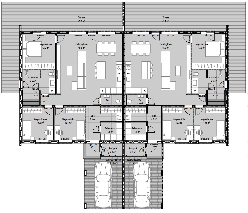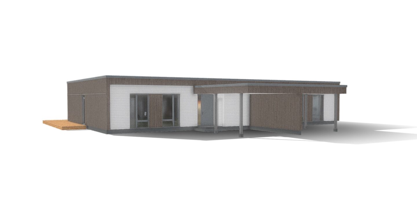 Paarismaja iseloomustab ökonoomsus ja hästi läbimõeldud planeering. Boks on ühekorruseline, kokku 4 tuba, eluruumi pinda 110,6m2. Lisaks terrass maja taga (49,1m2) ja auto varjualune (21m2). Kokku üldpinda 180,7m2.