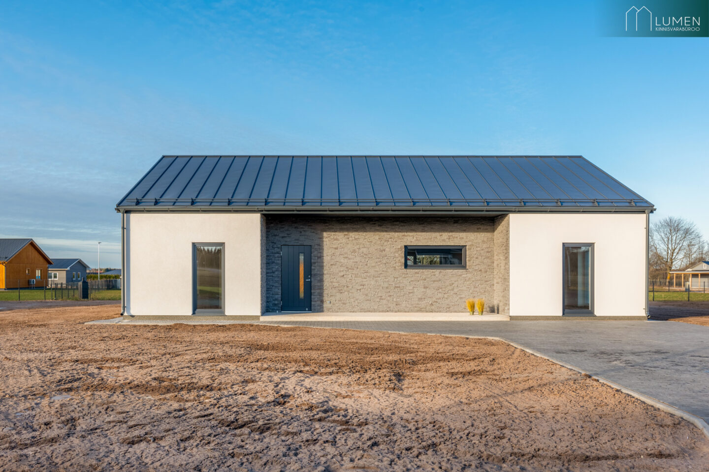 Maja ehitatakse plaatvundamendile. Välisseinad laotakse kivist ja välisfassaad krohvitakse, dekoratsiooniks lisatakse kivi või soovi korral laudis. Hoonele paigaldatakse klassik plekkprofiil. Akendeks on soojapidavad 3-kordse PVC aknad. Siseseinad on planeeritud kergplokist.
