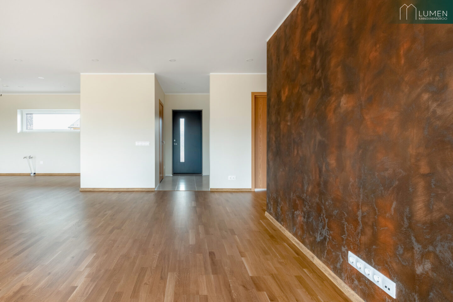 Ruumide siseviimistluses on kasutatud soojasid ja heledaid värvitoone. Põrandaid katab kvaliteetne naturaalne parkett. Sanitaarruumid on täielikult plaaditud ja paigaldatud kvaliteetne sanitaartehnika. Saunaruum on viimistletud termotöödeldud puitlaudisega ning paigaldatud elektrikeris. Varajasel broneerijal on võimalik kaasa rääkida siseviimistluses.