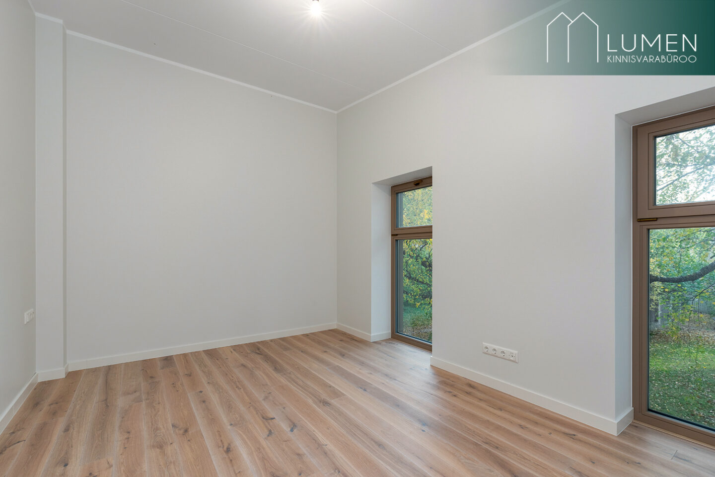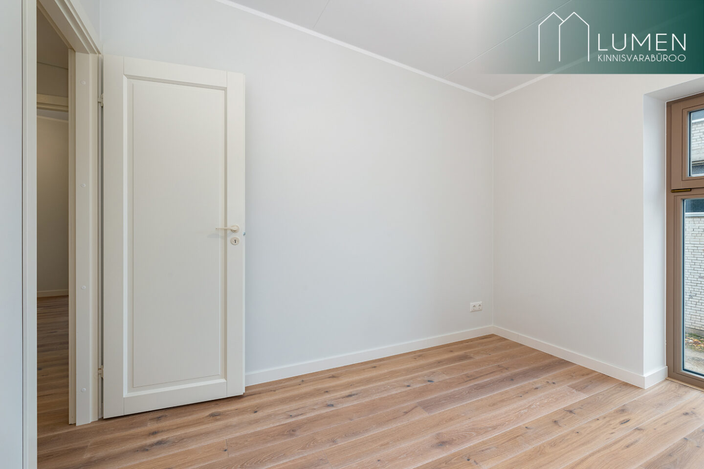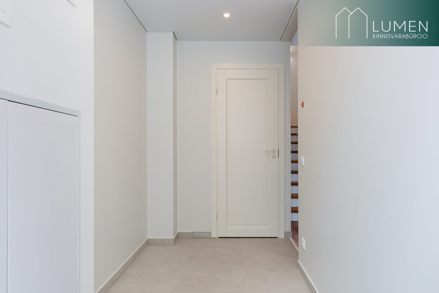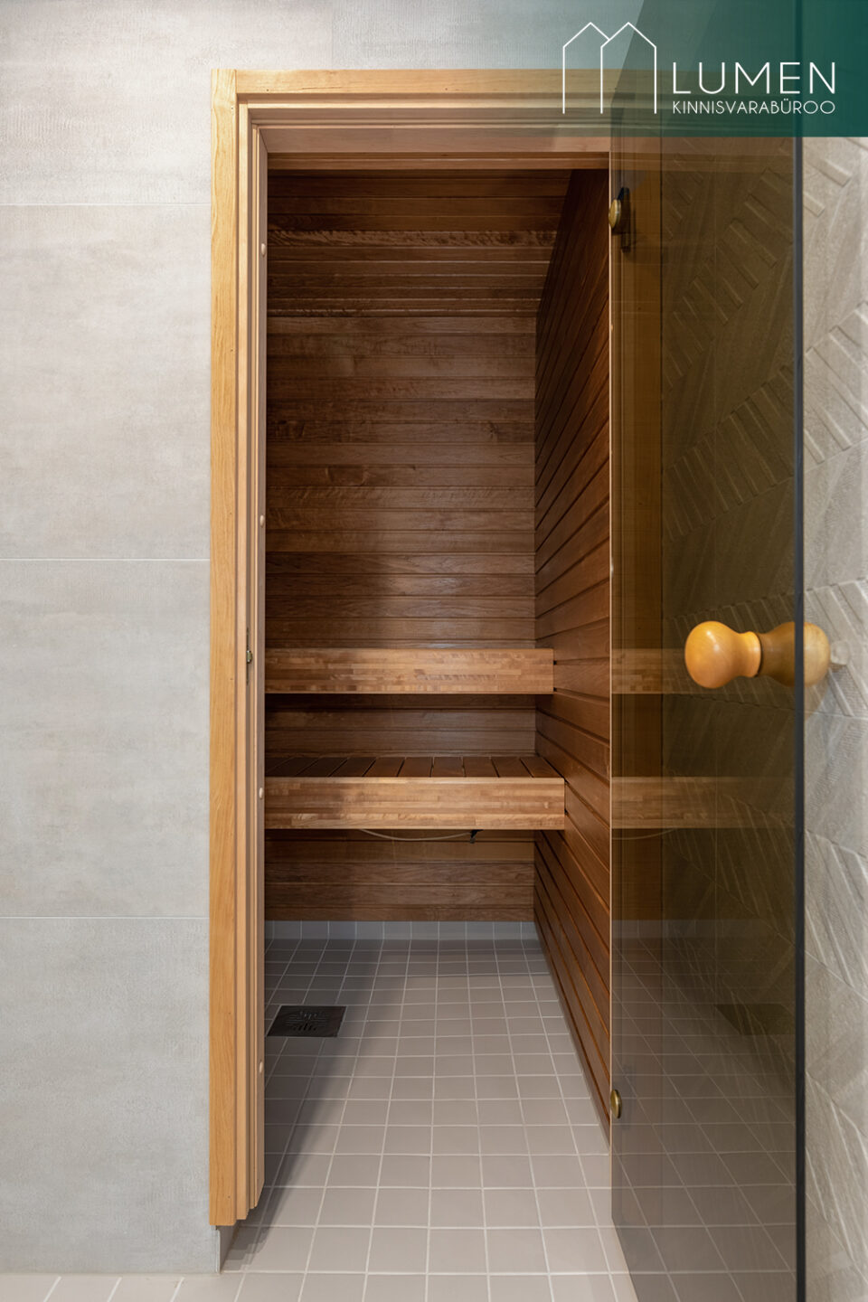 Ruumide siseviimistluses on kasutatud soojasid ja heledaid värvitoone, mis loovad mõnusa ja hubase kodutunde. Põrandaid katab kvaliteetne naturaalparkett. Tube eraldavad puidust kvaliteetsed uksed. Sanitaarruumidesse on paigaldatud keraamilised plaadid ja kvaliteetne sanitaartehnika. Saunaruum on viimistletud termotöödeldud puitlaudisega ning paigaldatud elektrikeris.