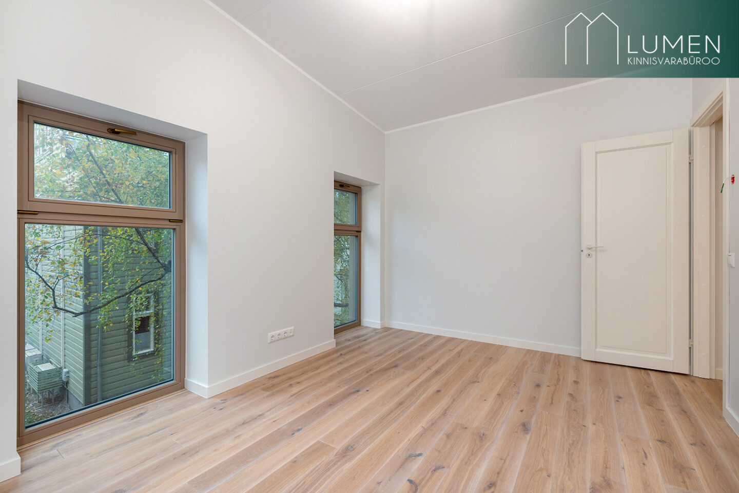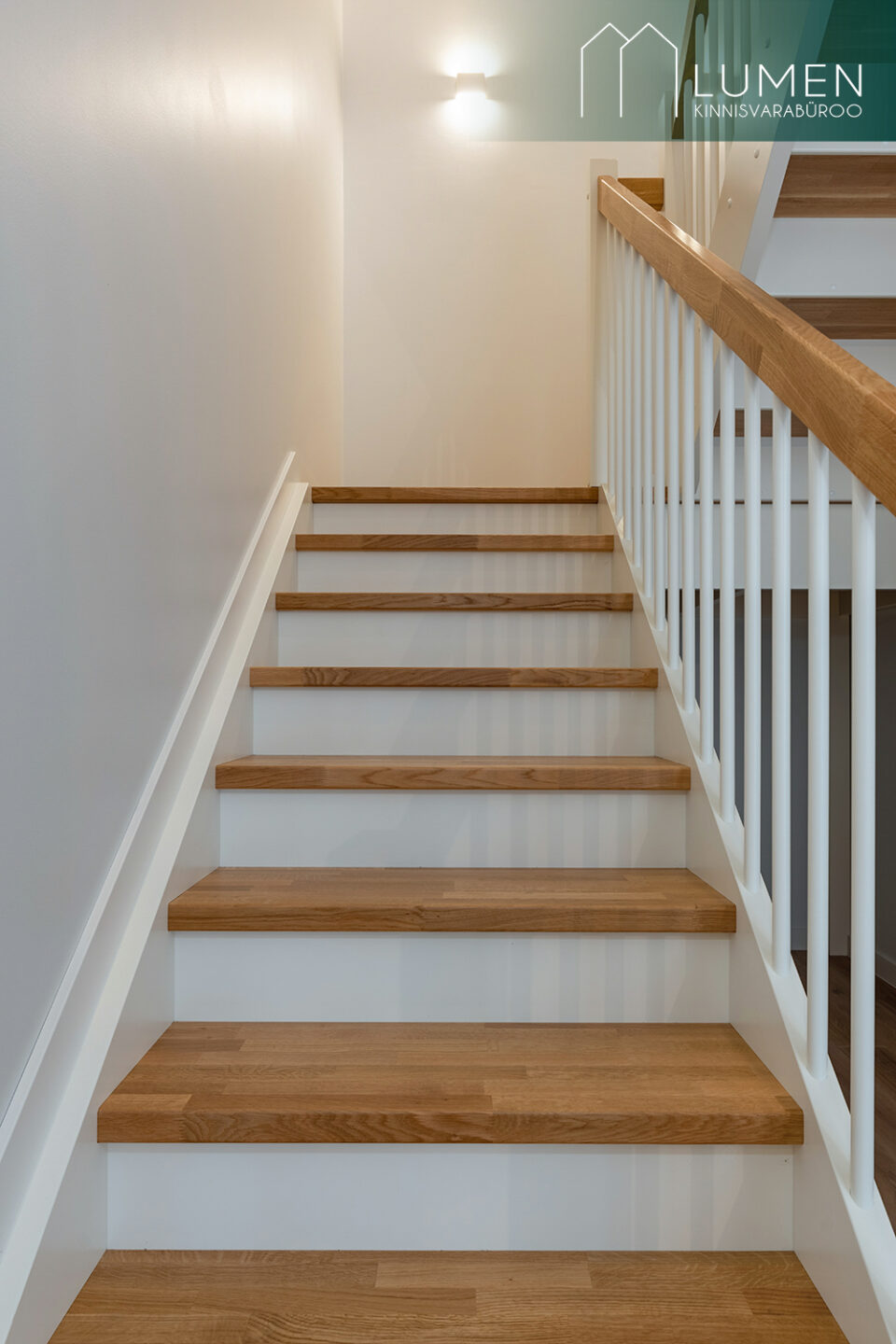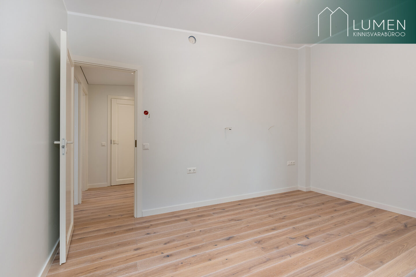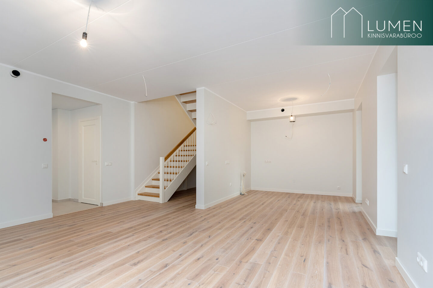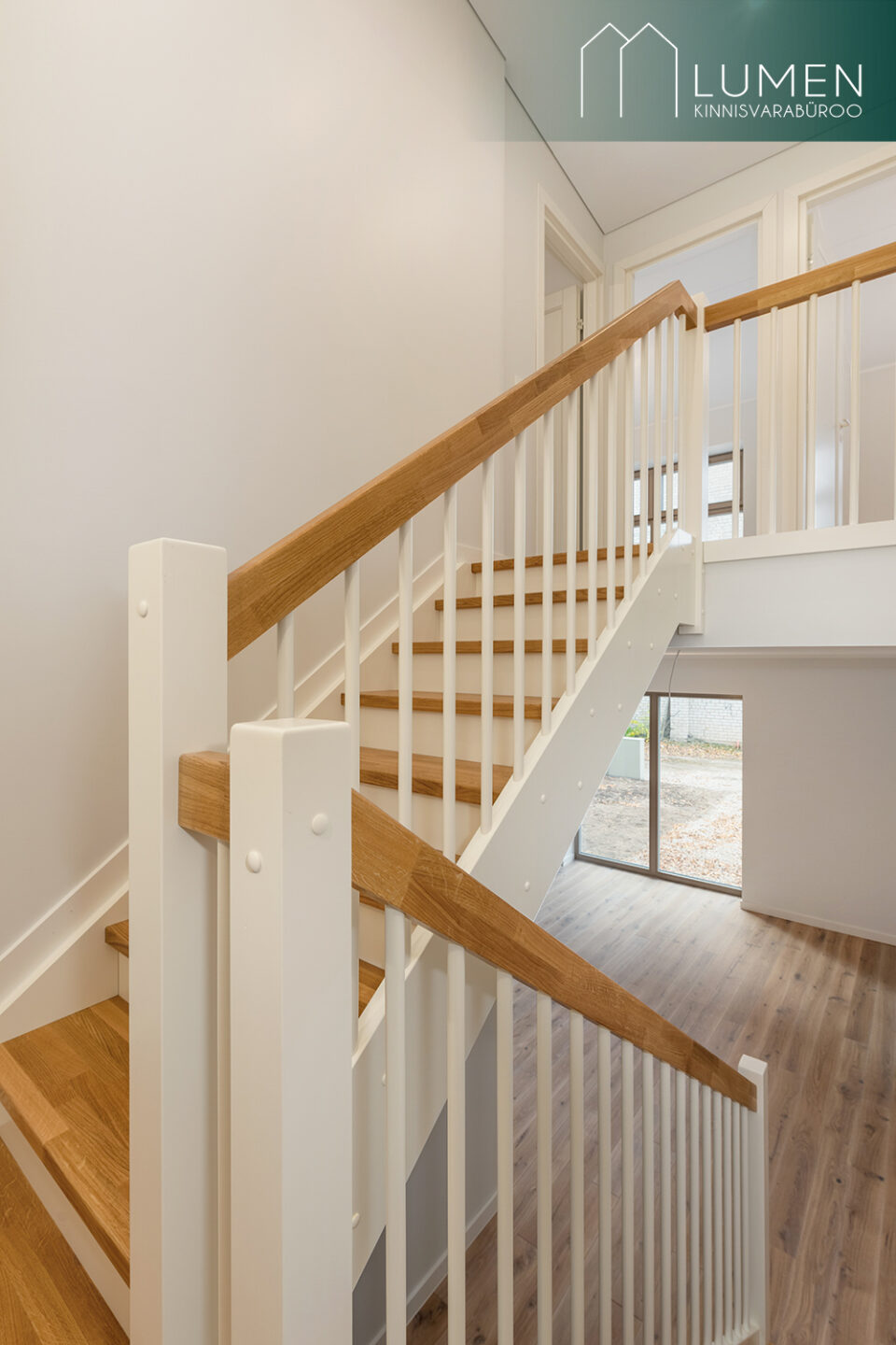 Ruumide siseviimistluses on kasutatud soojasid ja heledaid värvitoone, mis loovad mõnusa ja hubase kodutunde. Põrandaid katab kvaliteetne naturaalparkett. Tube eraldavad puidust kvaliteetsed uksed. Sanitaarruumidesse on paigaldatud keraamilised plaadid ja kvaliteetne sanitaartehnika. Saunaruum on viimistletud termotöödeldud puitlaudisega ning paigaldatud elektrikeris.